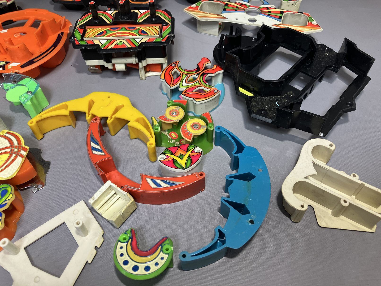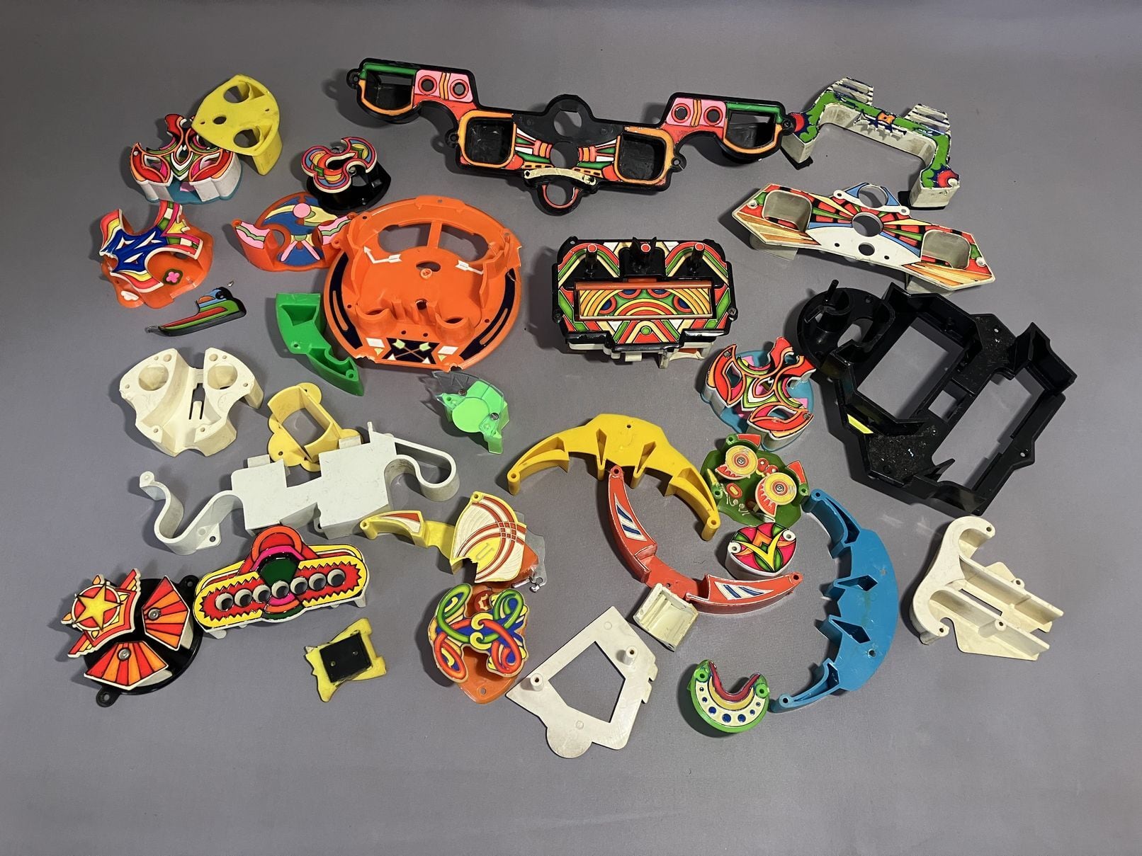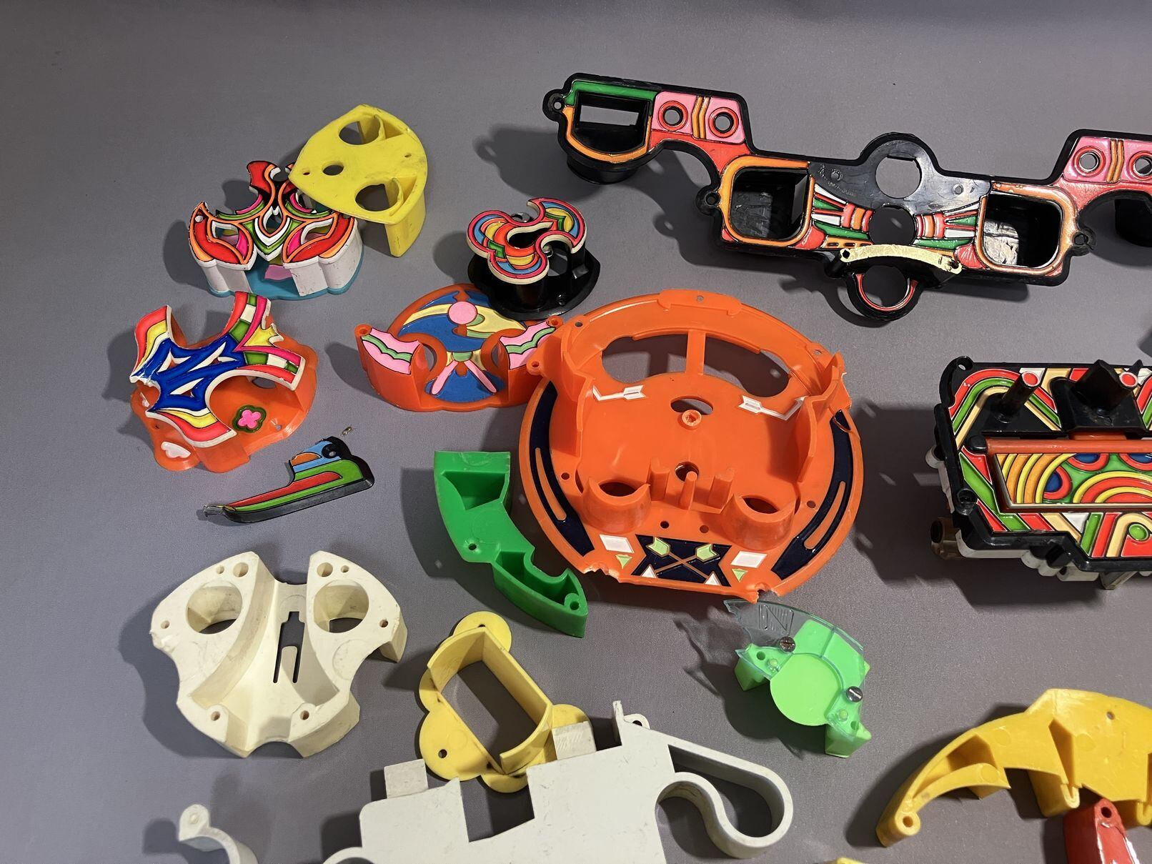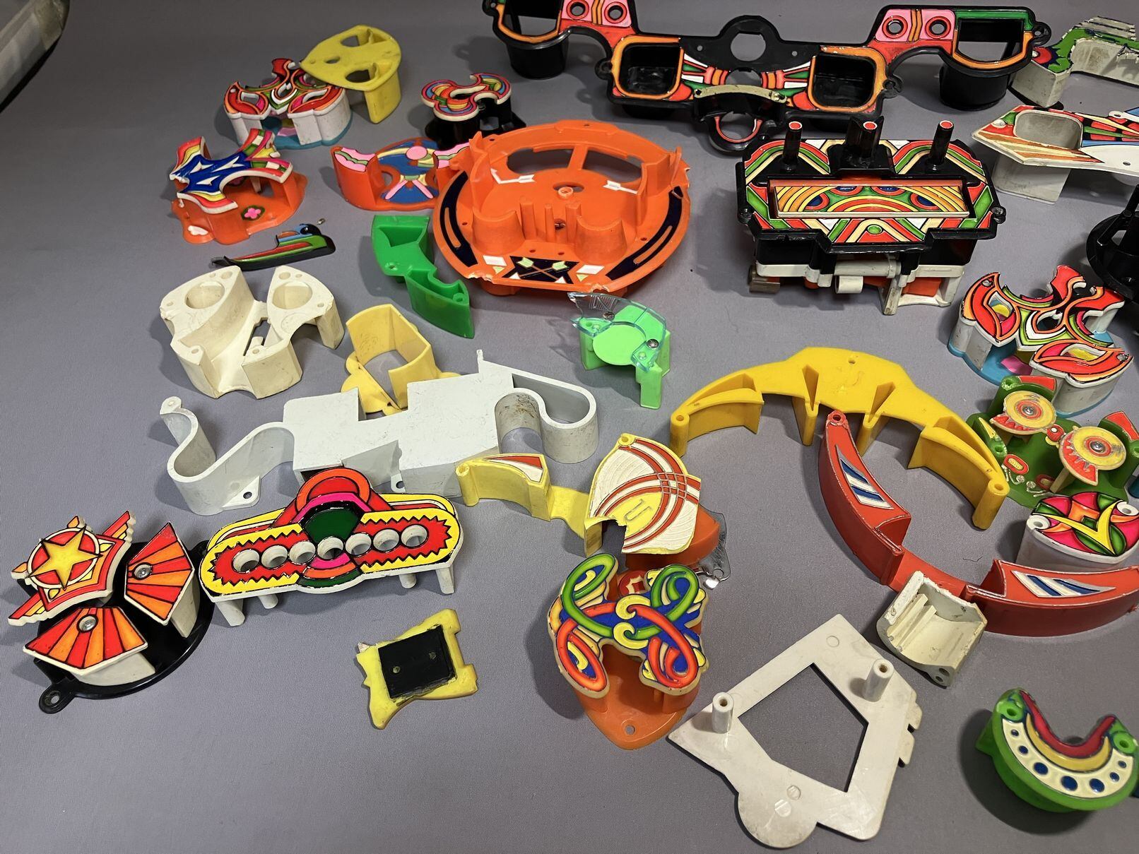 昭和のパチンコの役物・部品のセット、大小合わせて30個ほど。