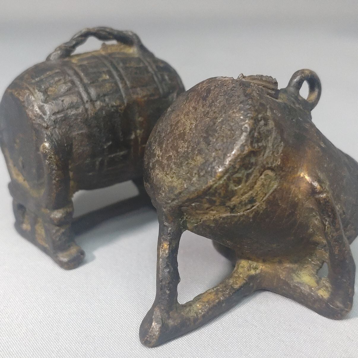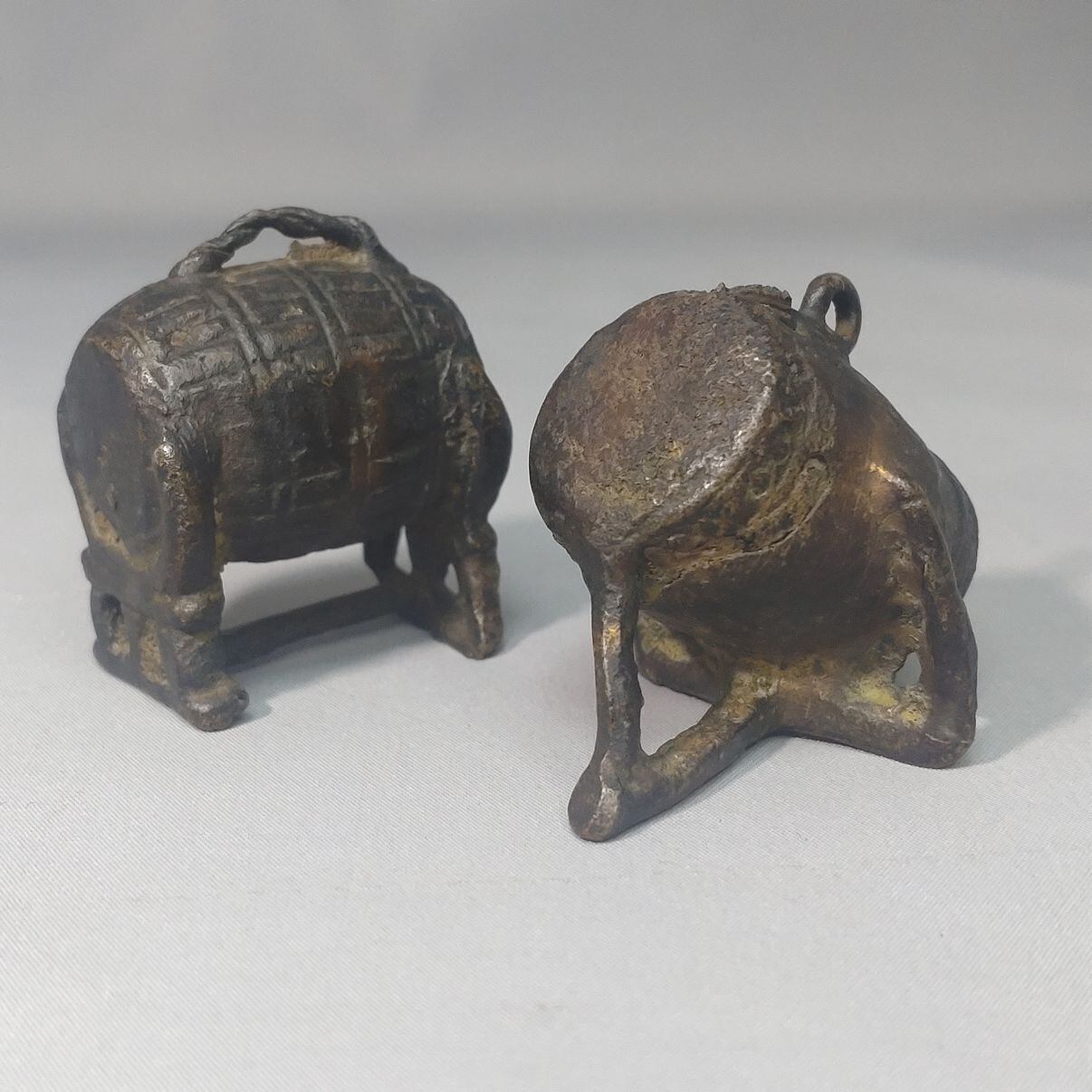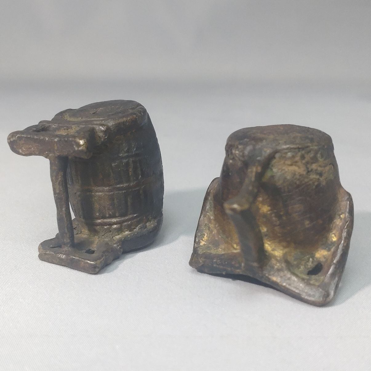 銅製の太鼓の置物2個セットです。高さ3cmとかわいらしいサイズのお品です。