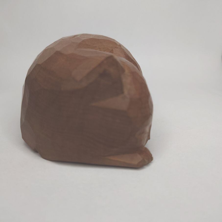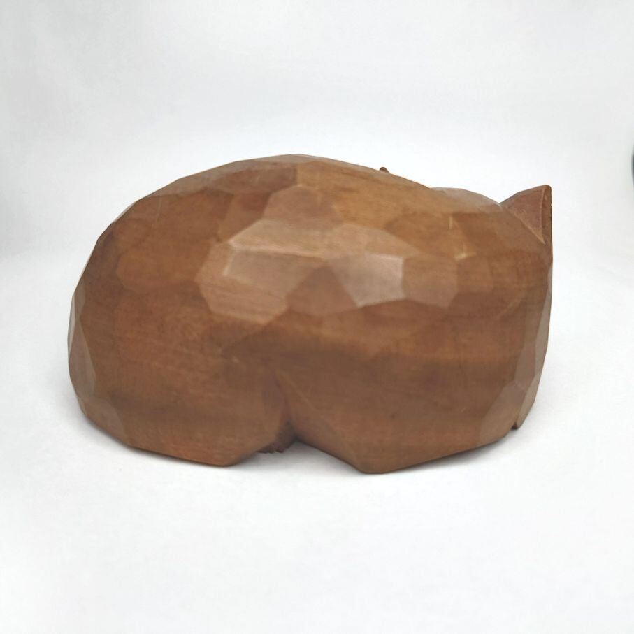 手のひらに載る大きさの木彫りの猫の置物です。