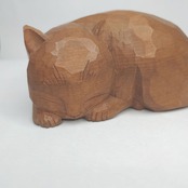 在銘木彫り猫置物