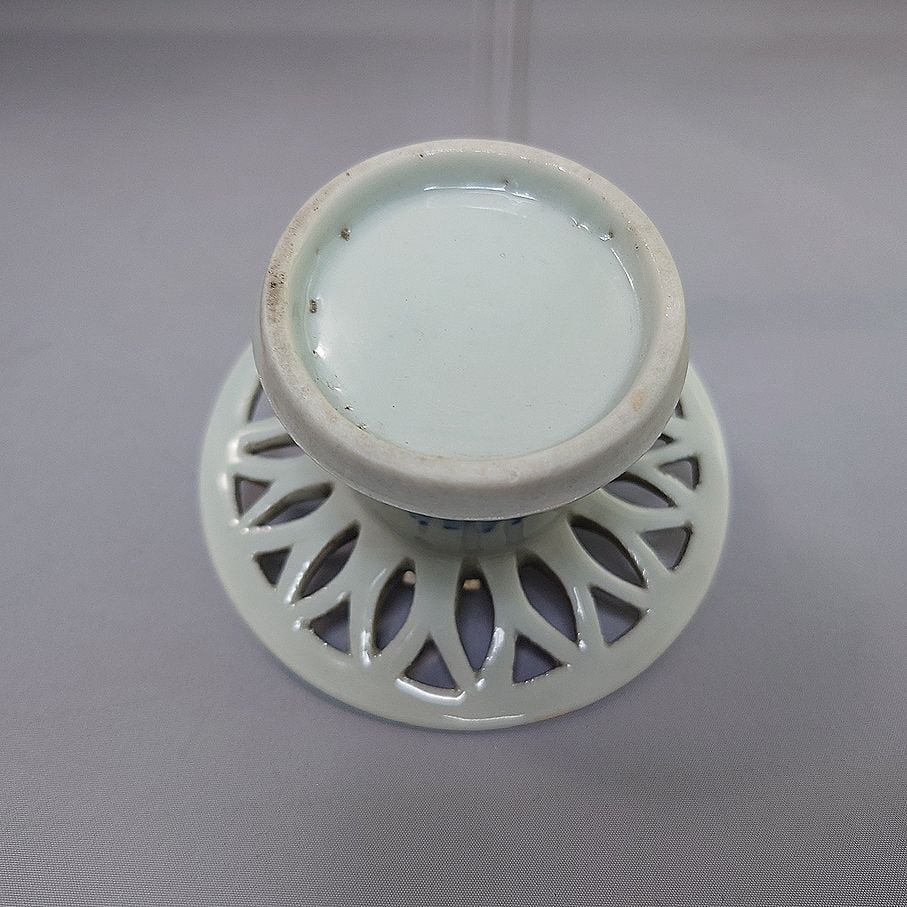 やや小ぶりの透かし彫りの高坏型杯台です。