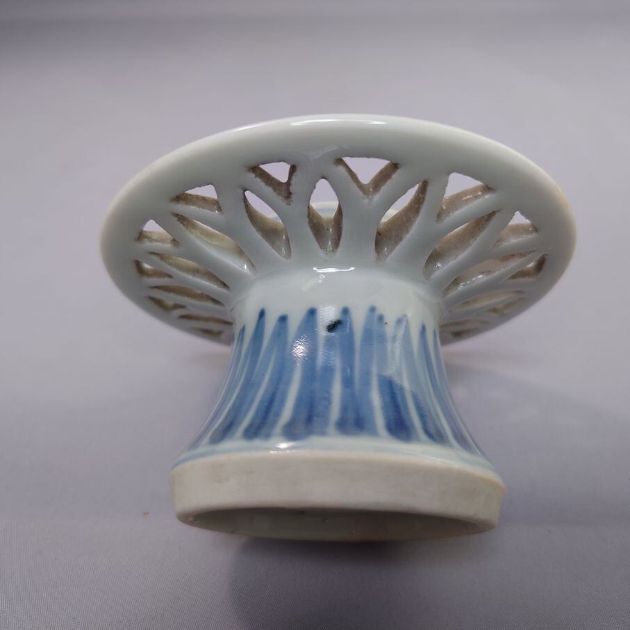 【特 徴】染付、江戸期、円形で脚付き(高坏型)
