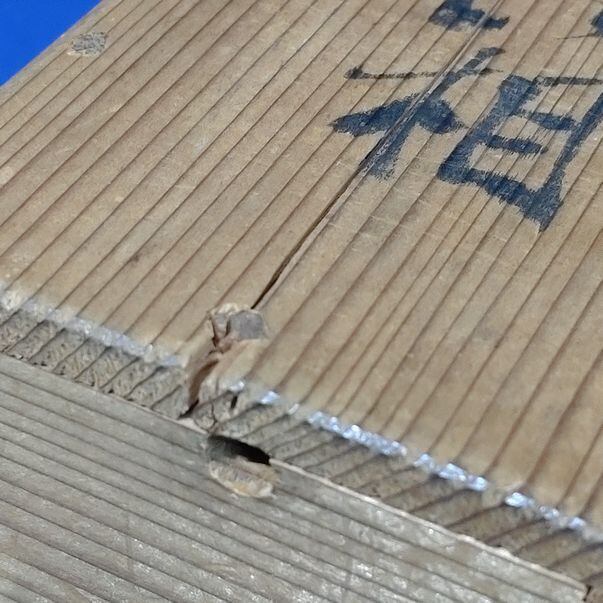 本体・くじ棒ともに木製で、本体は木釘で接合されています。